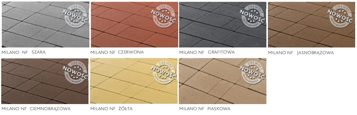 DREWBET® MILANO NF to jedna z najnowszych propozycji firmy DREWBET® . Dzięki zastosowaniu na krawędziach kostki brukowej nano fazy, uzyskujemy po jej ułożeniu praktycznie gładką powierzchnię. MILANO NF to układ trzech kostek o prostej formie, które oferowane są w szerokiej palecie melanży kolorystycznych. Bogactwo kolorów MILANO NF MELANŻE gwarantuje udaną realizacje powierzchni brukowej, której użytkownicy cenią sobie naturalny charakter otoczenia. Produkt ten, skierowany jest dla klientów poszukujących komfortu i wysokich walorów estetycznych projektowanej powierzchni.