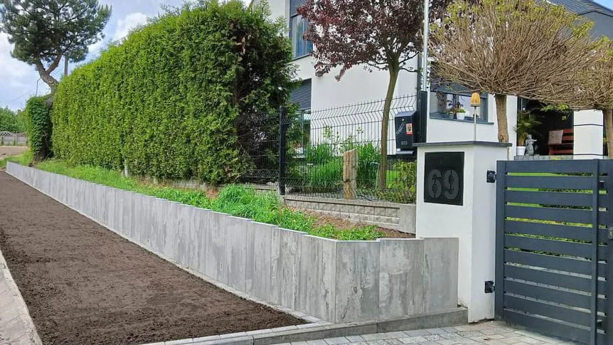 Palisada MINIMAL to gładki blok o wymiarach 98×52 cm, dostępny w różnych wysokościach, umożliwiający tworzenie donic, murków oporowych oraz obrzeży tarasów. Utrzymana w eleganckiej linii wzorniczej Royal, palisada idealnie komponuje się z innymi elementami ogrodzenia, tworząc harmonijną i spójną aranżację ogrodową.