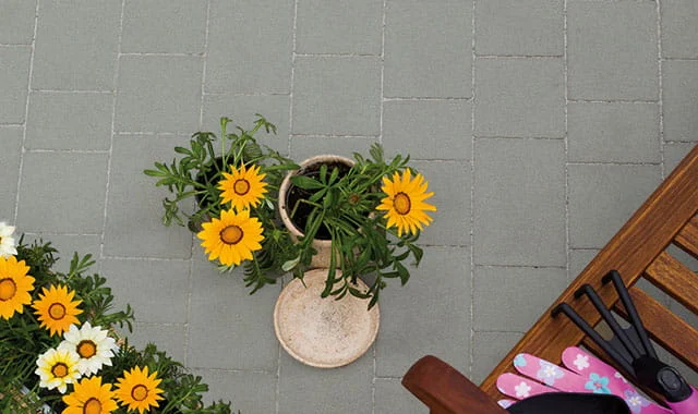 Pavimo to kostka brukowa o wielu obliczach. Jej klasyczne i barwne powierzchnie są niezwykle ciekawą propozycją aranżacji otoczenia wokół domu. Zimne barwy sombra i platino są idealne do kreowania jednolitych powierzchni. Oryginalne, ciepłe melanże canello, nokka i marrone wzbogacają aranżowane miejsce, doskonale łącząc się z zielenią ogrodu.