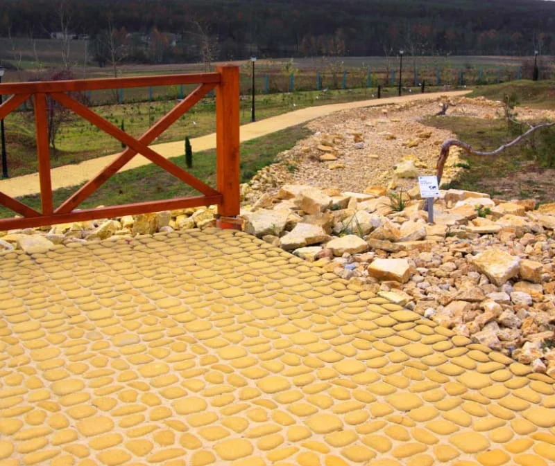 DREWBET® STONE to betonowe płytki ażurowe o nieregularnej formie. Cechuje je większa możliwość odprowadzania wody aniżeli klasyczna powierzchnia z kostki. Wypełniane zwykle są trawą lub dekoracyjnym żwirem.