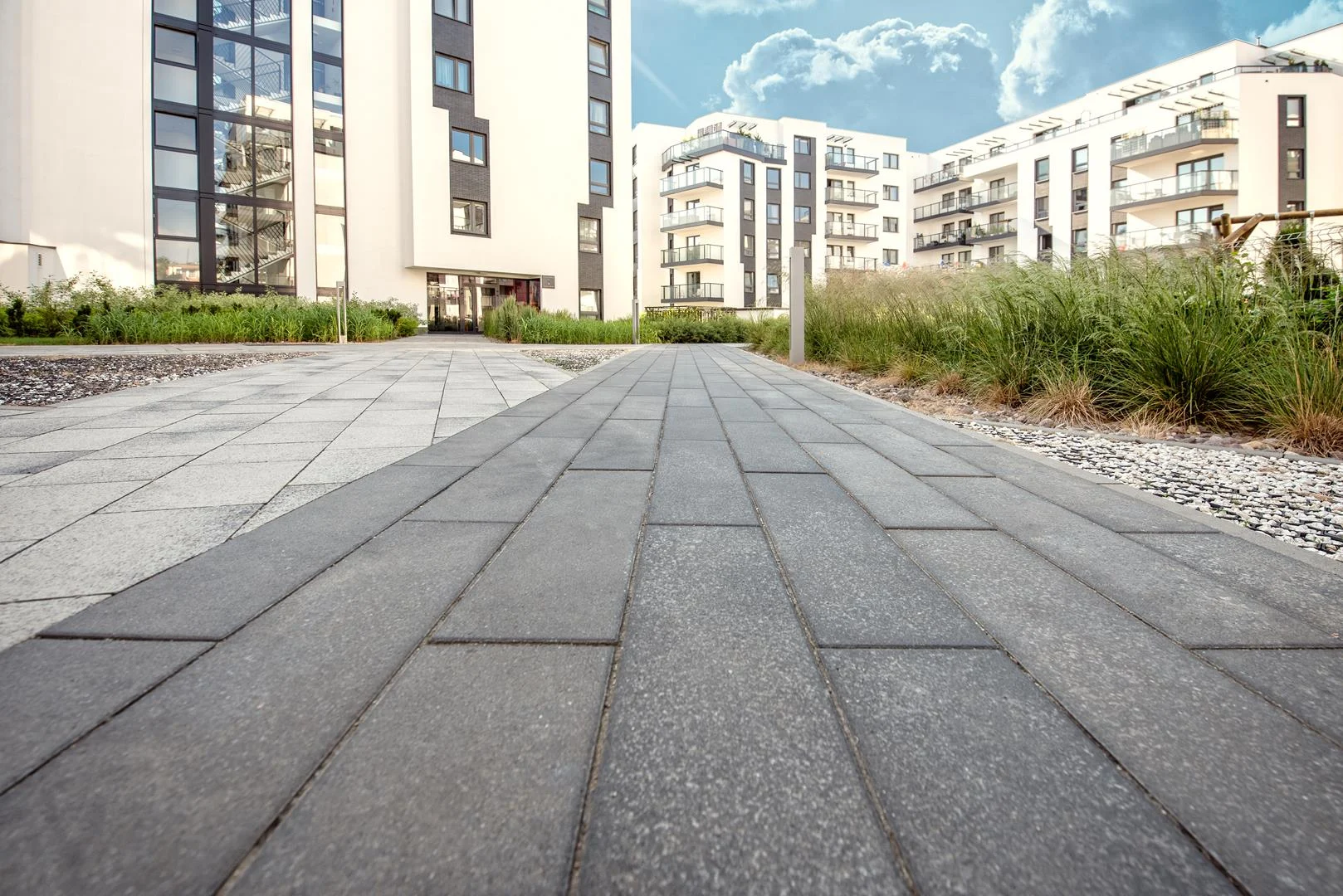 Aktualny trend i styl proponowany przez współczesną architekturę jest istotą płyt brukowych Torenti. Dwa nowoczesne formaty oraz elegancki kolor luce nero i minimalistyczny platino to innowacyjne rozwiązanie do aranżacji ekskluzywnej przestrzeni.